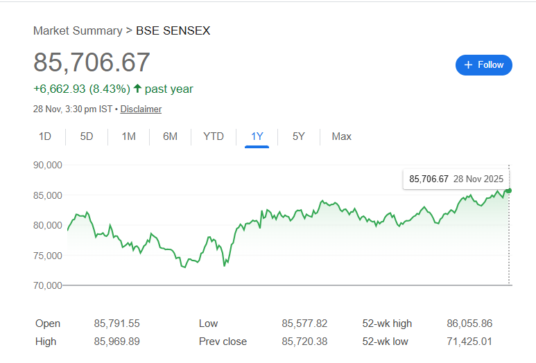 इस वर्ष भारतीय निवेशकों ने रिकॉर्ड तोड़ इन्वेस्टमेंट किया। पिछले वर्ष जो 5 लाख करोड़ का था, इस वर्ष यह बढ़कर 7 लाख करोड़ का रहा और पिछले साल के रिकॉर्ड तोड़कर एक नया कीर्तिमान स्थापित कर दिया। Nifty50 करीब 100 अंक चढ़कर 26298.10 तक उठा और Sensex 400 अंक चढ़कर जो 86000 के करीब पहुंचा। भारत की जीडीपी के बनने का सबसे बड़ा कारण यह भी है।